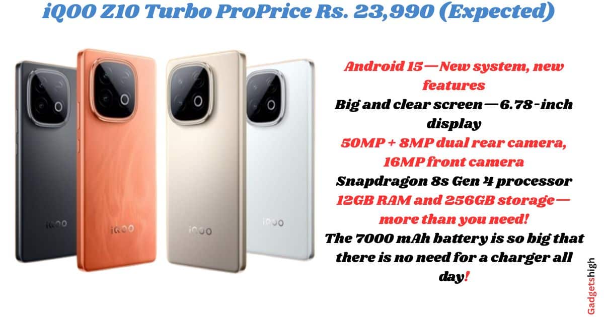 - iQOO Z10 Turbo Pro – Price Rs. 23,990 (Expected)
